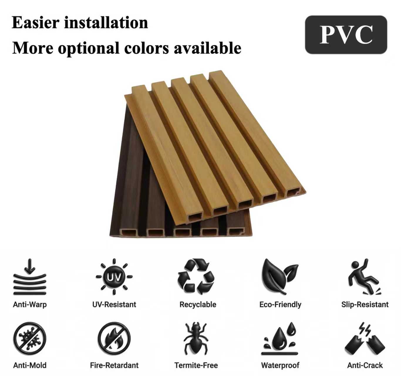 حوّل مساحاتك مع ألواح الجدران المصنوعة من مادة PVC عالية الجودة. تتميز هذه الألواح بمظهرها الأنيق والعصري، فهي ليست جذابة بصريًا فحسب، بل تتميز أيضًا بمقاومتها العالية للتآكل. بفضل تنوع استخداماتها، تُناسب هذه الألواح مختلف الأماكن، من غرف النوم المريحة إلى المساحات التجارية الكبيرة. ارتقِ بديكور منزلك مع ألواح الجدران المصنوعة من مادة PVC فائقة الجودة لتحصل على لمسة نهائية عصرية تدوم طويلًا.